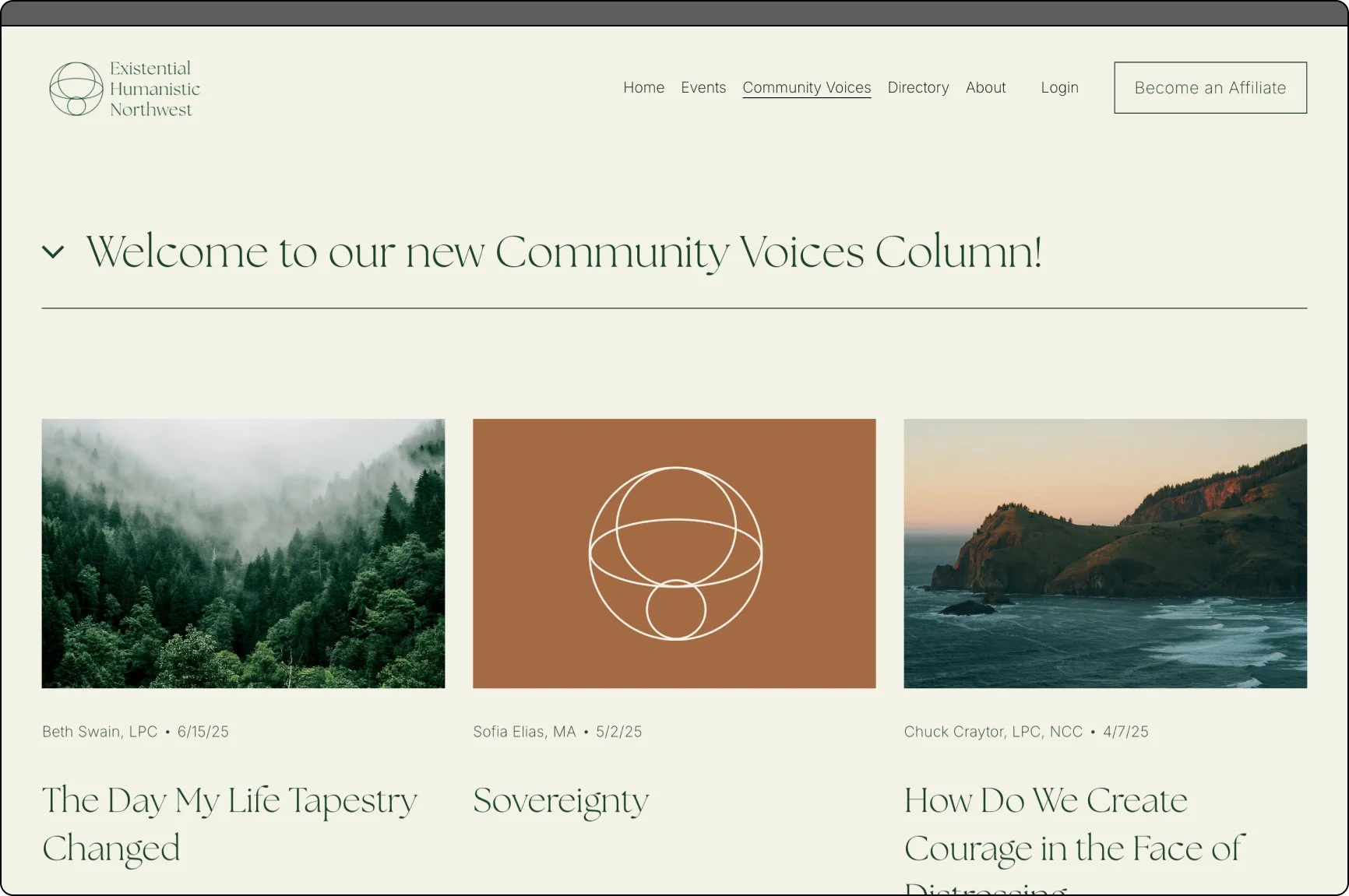Track down multiple interest holders with varied perspectives and craft visual messaging for a nuanced therapeutic modality. Offer them a site that is usable and authentically communicates a trustworthy narrative - hosted within a CMS that is easy to update, but not at the cost of unique brand expression.